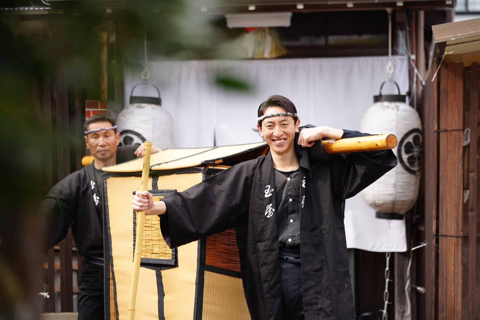 日本唯一、威勢の良い駕籠屋がお宿へお迎えに上がります。